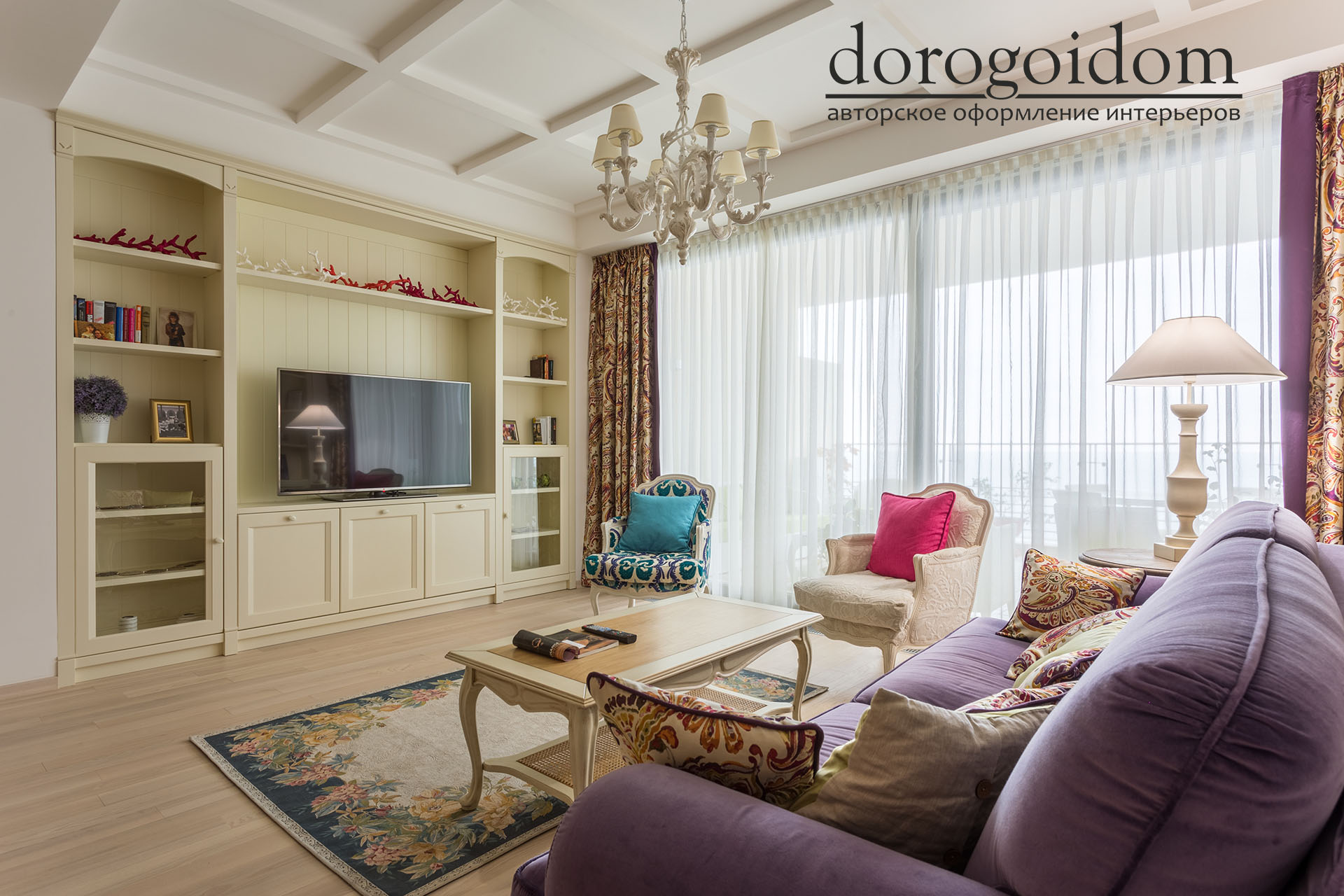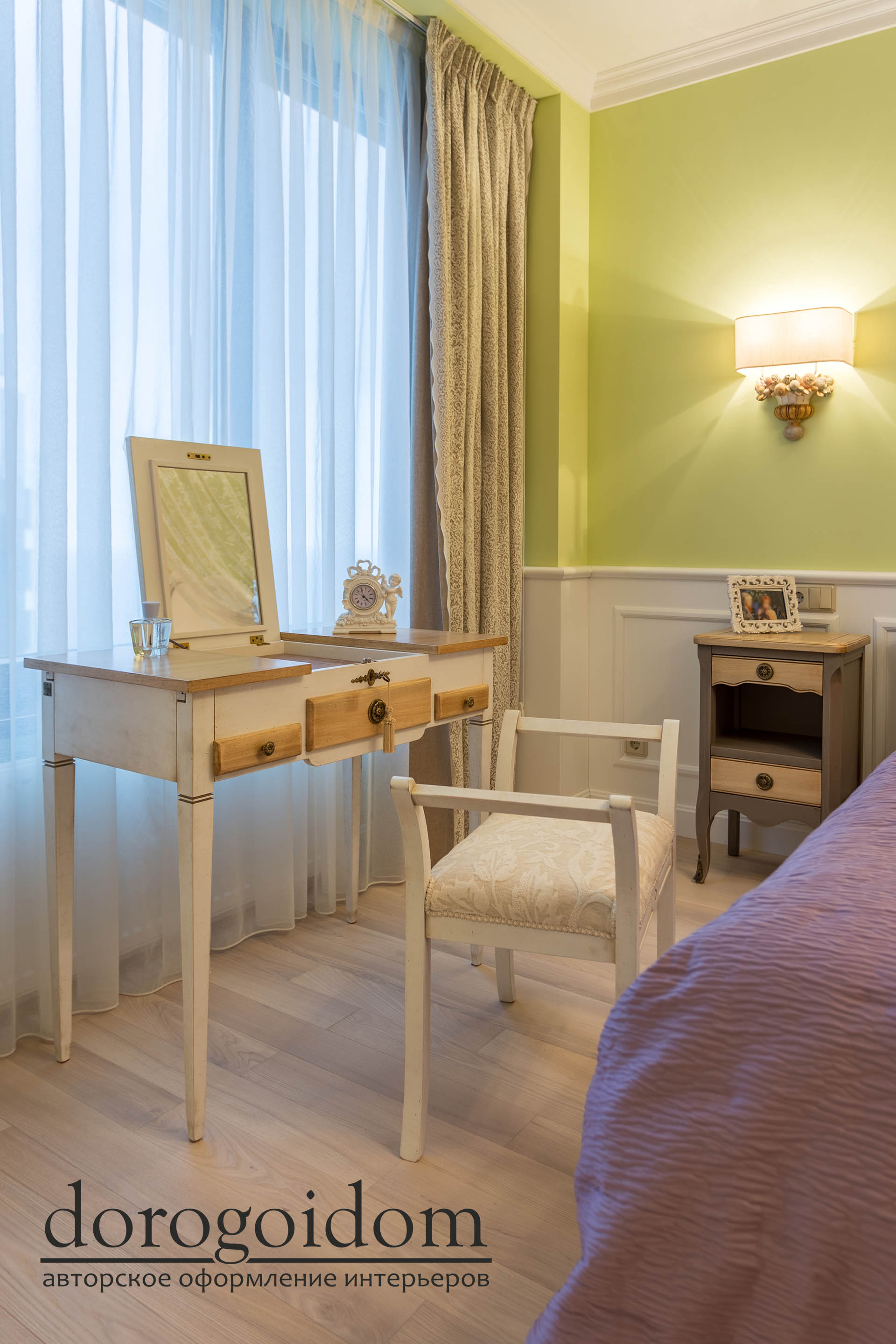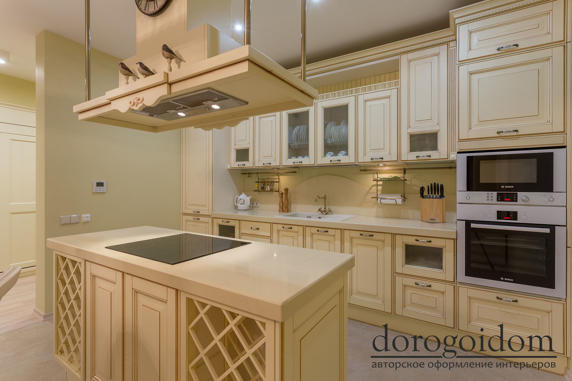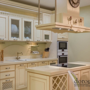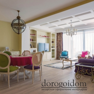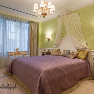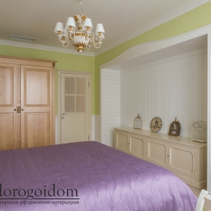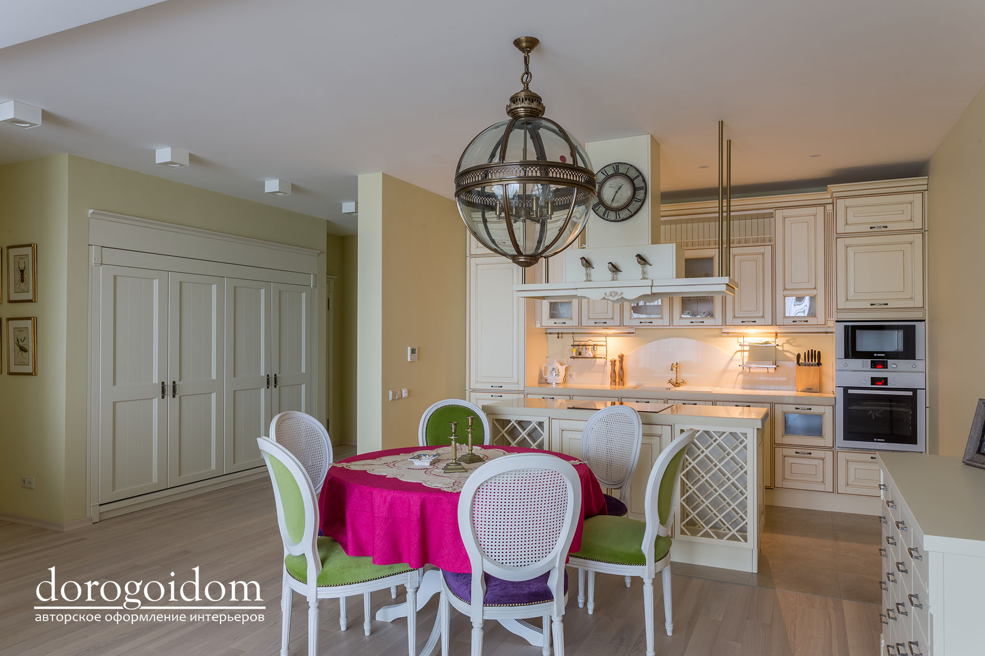 Яркие акценты в мебели расставили приоритеты, поэтому никаких декоративных штукатурок, лепки, позолоты (так присущих традиционному классическому стилю) и ярких модерновых картин! Только спокойный и нежный фон и тонкий намек на любимые фрукты.
