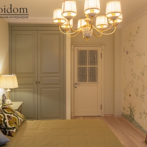 Роспись на стенах в спальне выполнена в стиле фрески (мотив японского древнего искусства). В этом проекте мы использовали краски для стен и потолков - San Marco Uno.