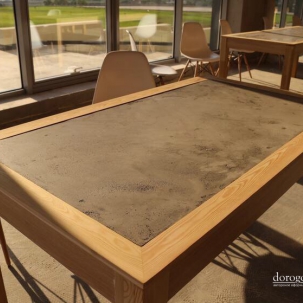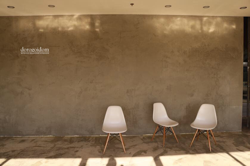 зала выполнены из декоративного покрытия Elekta Kolossos, исполнение под "сырой бетон". Столы в зале (за одним из которых сидел сам В. В. Путин) покрыты прочным декоративным покрытием Микробетон. Все вместе смотрится более чем органично! Получился современный, стильный проект, который наша команда арт - салона «Дорогой Дом» выполнила качественно и с душой!