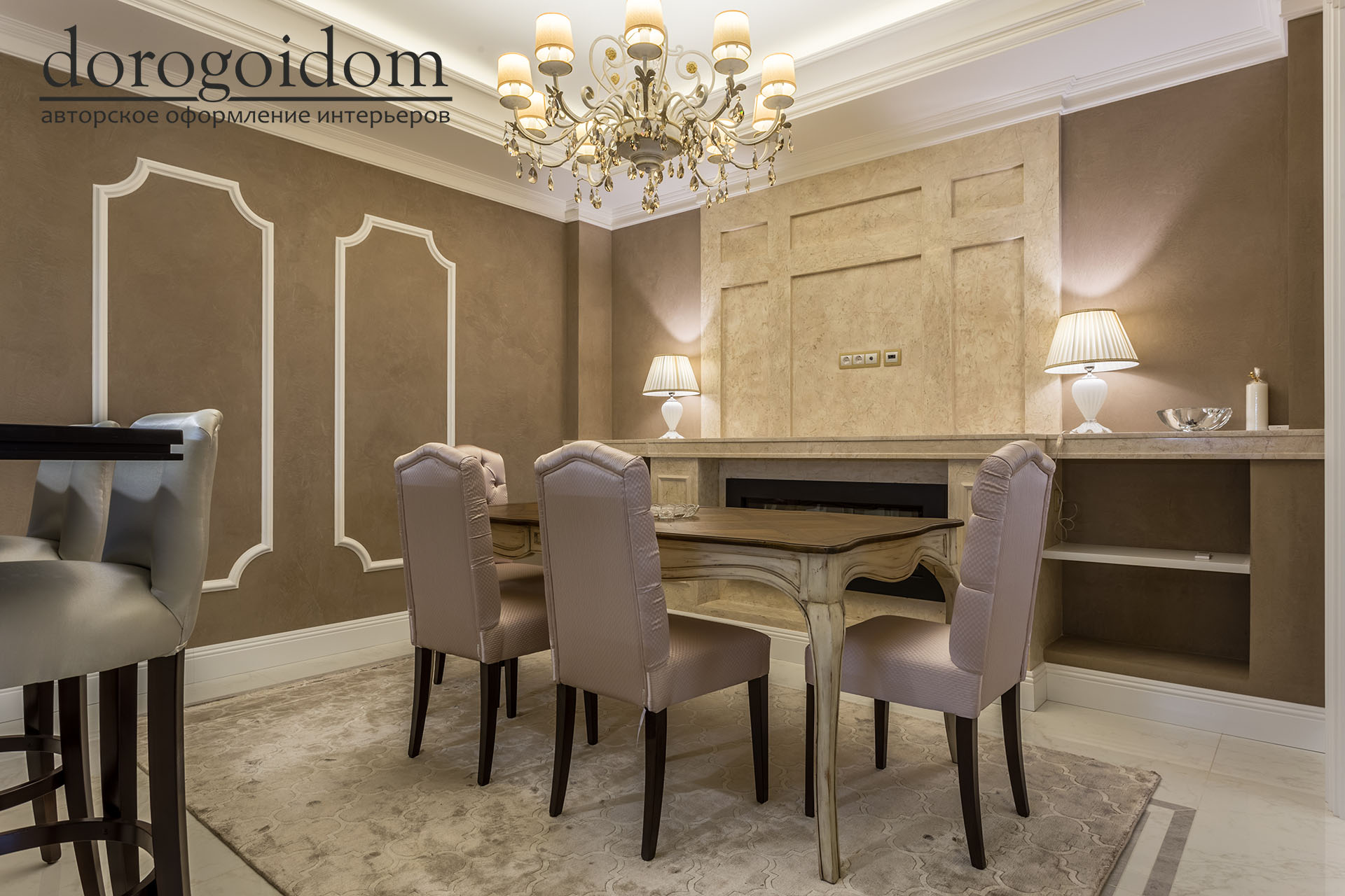 От этого проекта веет токим ароматом односолодового виски и густым дымом сигары. Этот проект по истине проявление мужской силы. Грубая древесита Итальянских мастеров смешивается с тонкостью вязи натуральных шелковых ковров . Строгие цвета в декоративной штукатурке Marmorino и четкие линии гипсовой лепки ручной работы. Мы довольны своей работой. Лепка , декоративная штукатурка , портал камина под натуральный мрамор - все выполнено нашими мастерами. Спасибо студии Bellarte за еще один шикарный и стильный проект, компании Конструктив за слаженную и четкую подготовку проекта , и компании General Design за завершающие штрихи в текстиле .